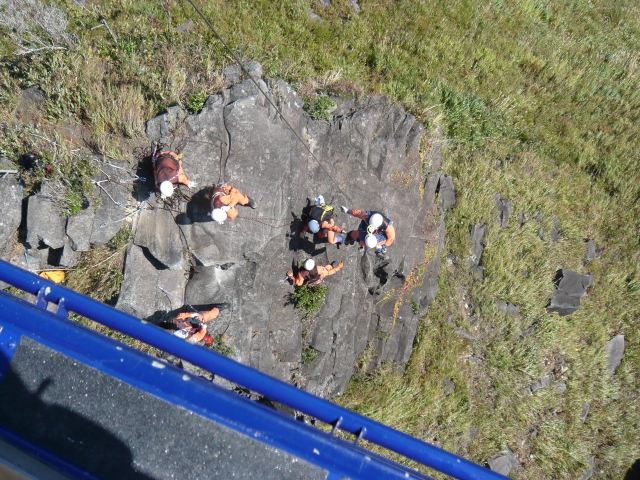 山岳遭難研修では、雑穀谷の高〜い岩場での訓練を行い、
